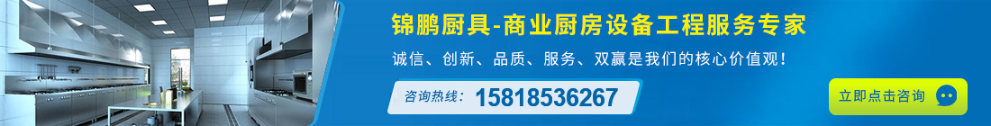 錦鵬廚具是一家專(zhuān)業(yè)從事星級(jí)酒樓、食堂、學(xué)校、餐廳、工廠、機(jī)關(guān)、醫(yī)院等商用中央廚房設(shè)備工程設(shè)計(jì)售后維修保養(yǎng)為一體的現(xiàn)代化企業(yè),廚具設(shè)備廠家。承接不銹鋼廚房廚具、酒店廚房設(shè)備工程、不銹鋼廚房設(shè)備工程、商用廚房工程設(shè)計(jì)及制冷制熱系統(tǒng)工程。業(yè)務(wù)范圍覆蓋廣州、深圳、東莞、佛山、惠州等地,公司依據(jù)客戶(hù)要求和現(xiàn)場(chǎng)實(shí)際情況精心設(shè)計(jì),合理安排,創(chuàng)造節(jié)能環(huán)保優(yōu)質(zhì)產(chǎn)品和熱情服務(wù)。